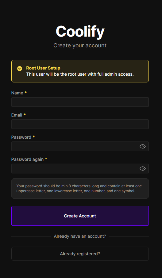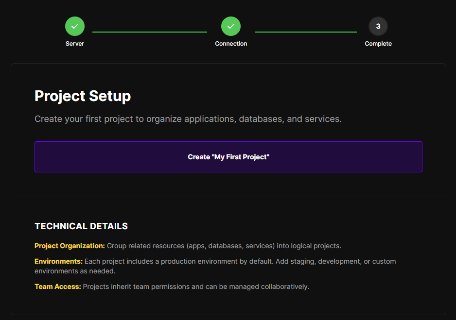 SSH-ключ: можно добавить сразу, можно потом. Он пригодится, когда будете цеплять дополнительные серверы к вашему Coolify, чтобы управлять всей фермой из одного окна.