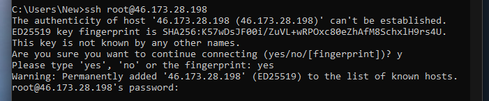 Вводим команду: ssh root@IP-адрес-вашего-сервера (IP есть в кабинете Beget или на почте).