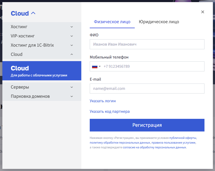 Нюанс: При регистрации выбирайте раздел Cloud. Нам не нужен обычный хостинг, нам нужен виртуальный сервер. Если после входа видите раздел «Хостинг» — пишите в саппорт, чтобы отключили, иначе будут капать лишние деньги.