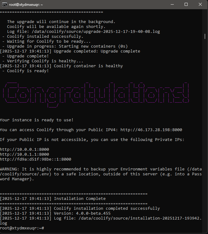 curl -fsSL https://cdn.coollabs.io/coolify/install.sh | sudo bash